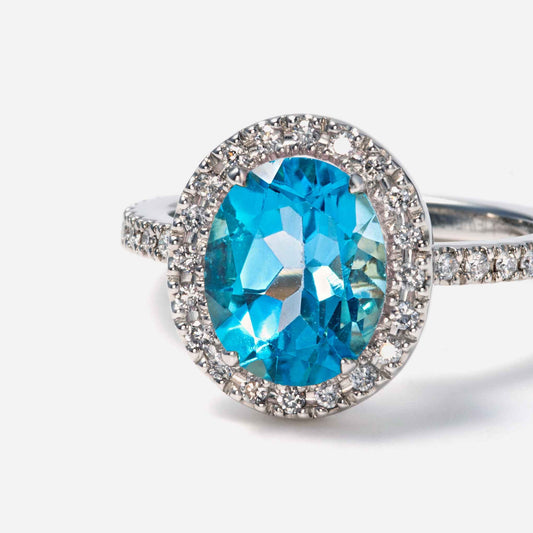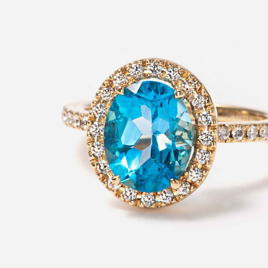 basic collection / blue topaz diamond stacking halo ring K18YG