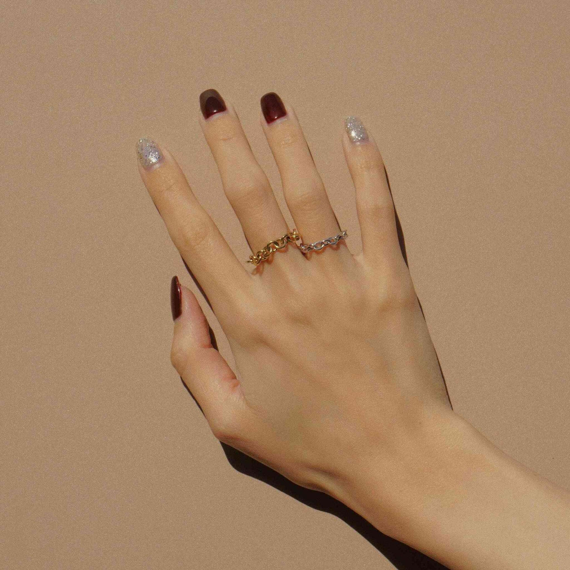線の太さ、コマのサイズまで細かく指定し、完全オリジナルで製作したチェーンリング。