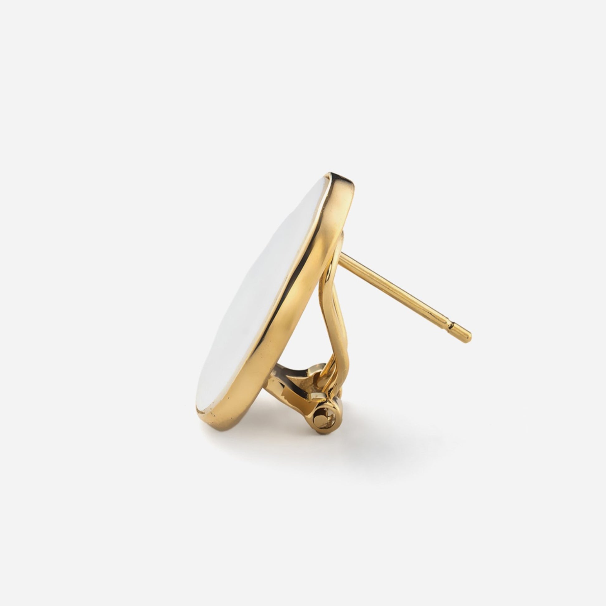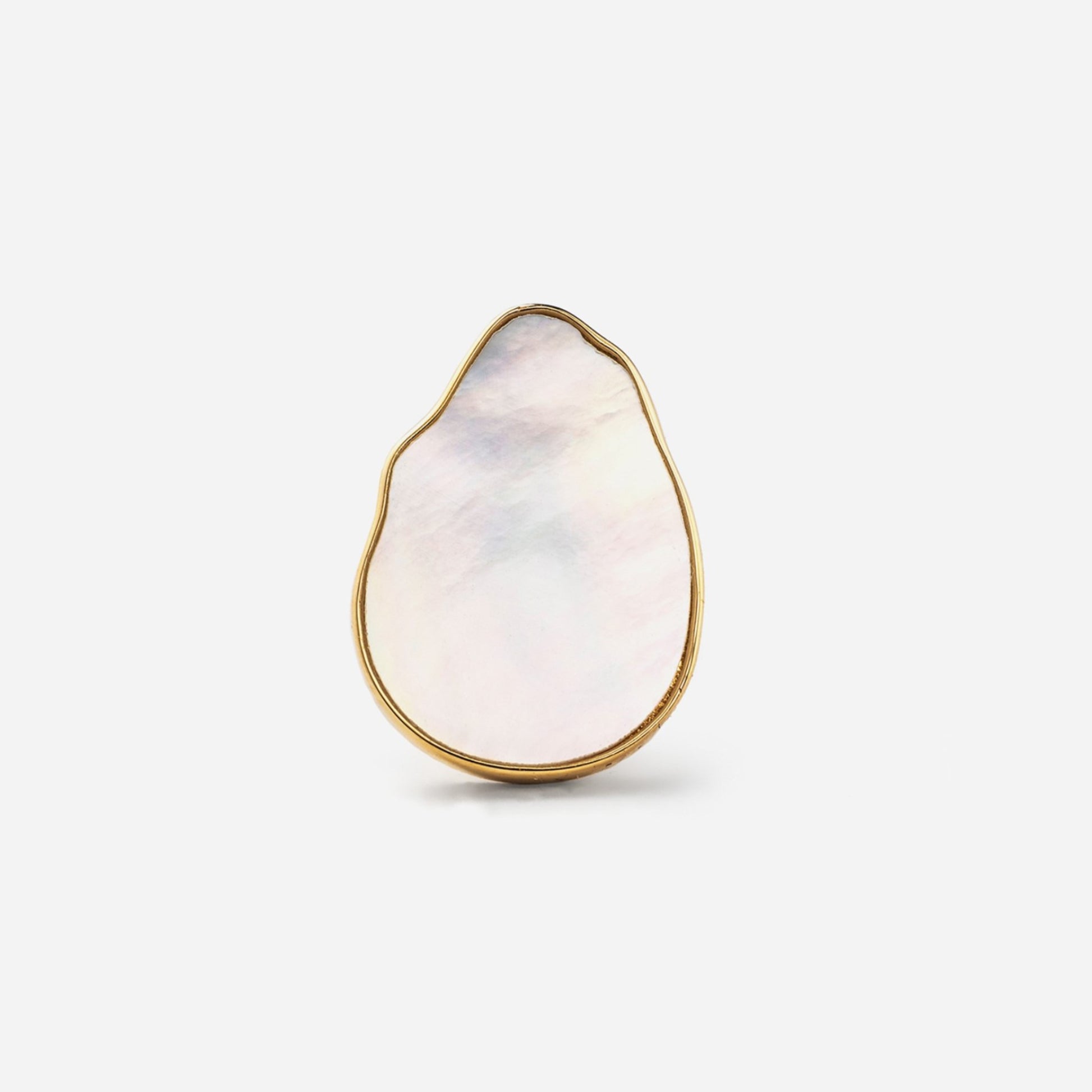 オイスターのような輪郭のバロックパールのシルエットを、マザーオブパールを用いて2次元のアウトラインとして再現。
