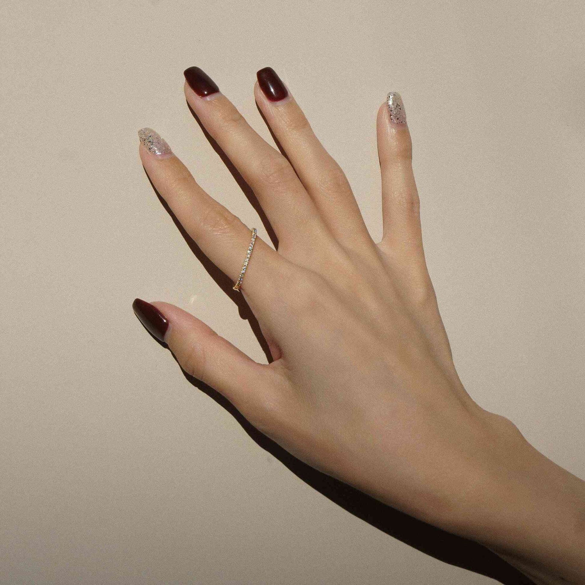 ベーシックなハーフエタニティリングをベースに生まれた、diamond slash half eternity ring。