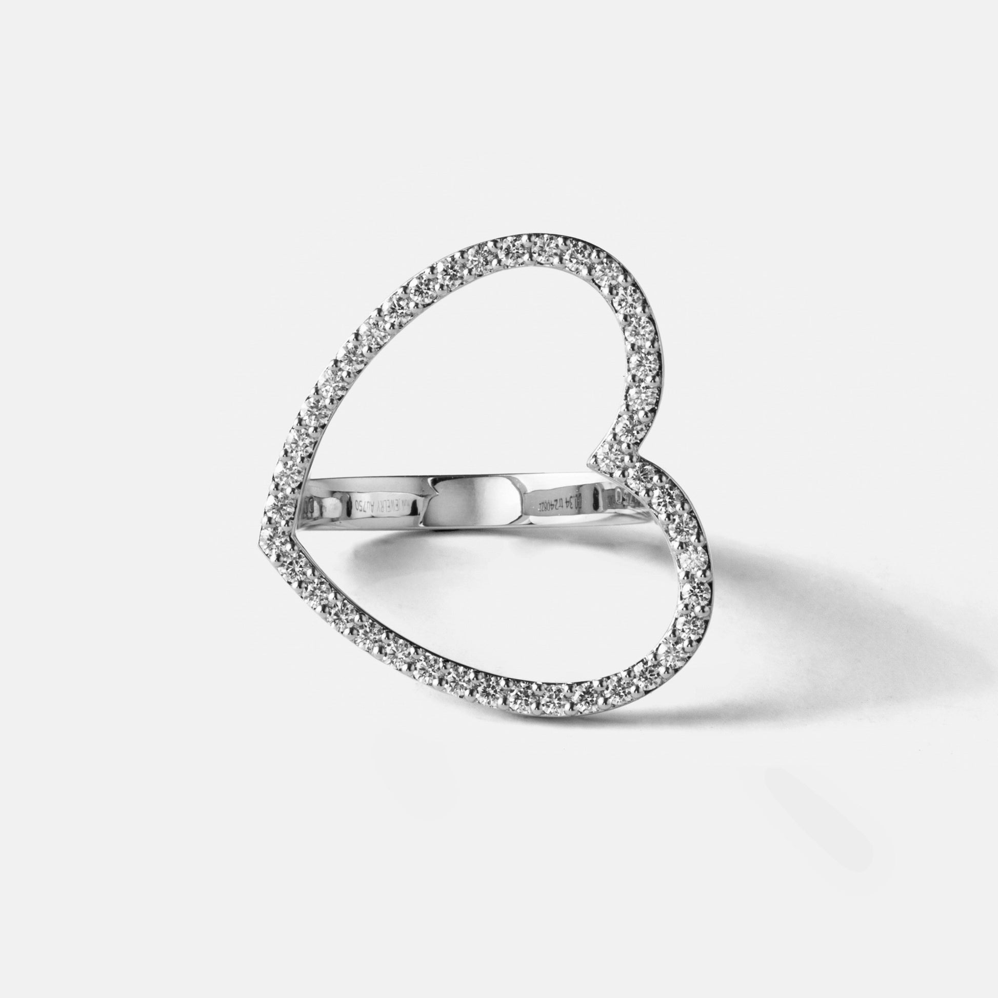 ダイヤモンドを贅沢に用いたハートモチーフが、斜めの角度でデザインされたリング。