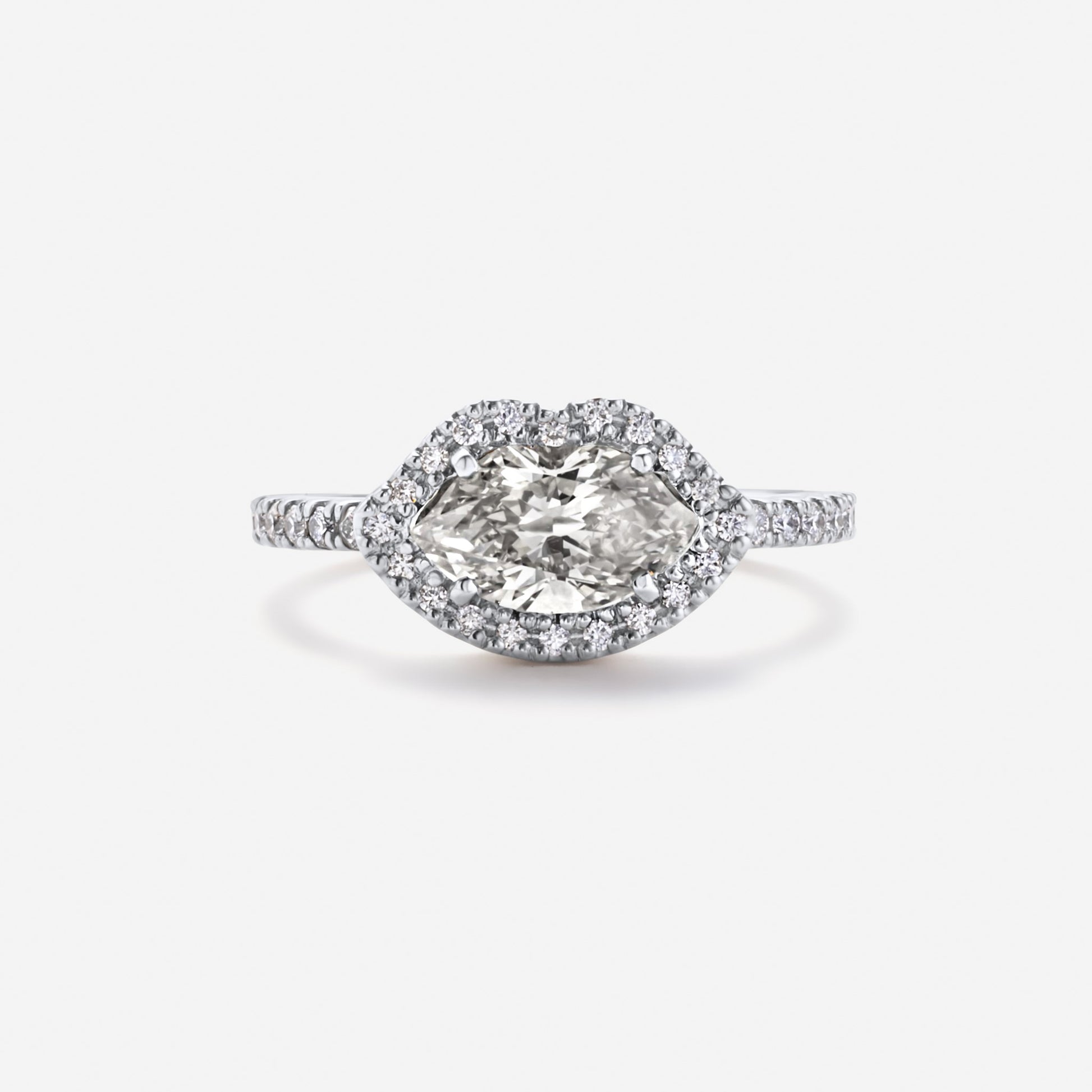 そのリップモチーフをより引き立てるために、取り巻きにはあえてやや小ぶりなメレダイヤモンドを選定。