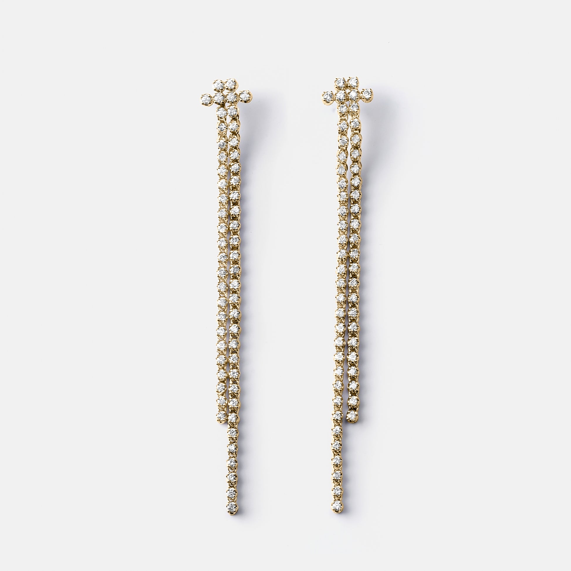 ダイヤモンドを全周使用した贅沢なブレスレットである〝テニスブレスレット〟のディテールをそのままに、現代のライフスタイルにフィットする形でピアスへと再構築されたデザインです。
