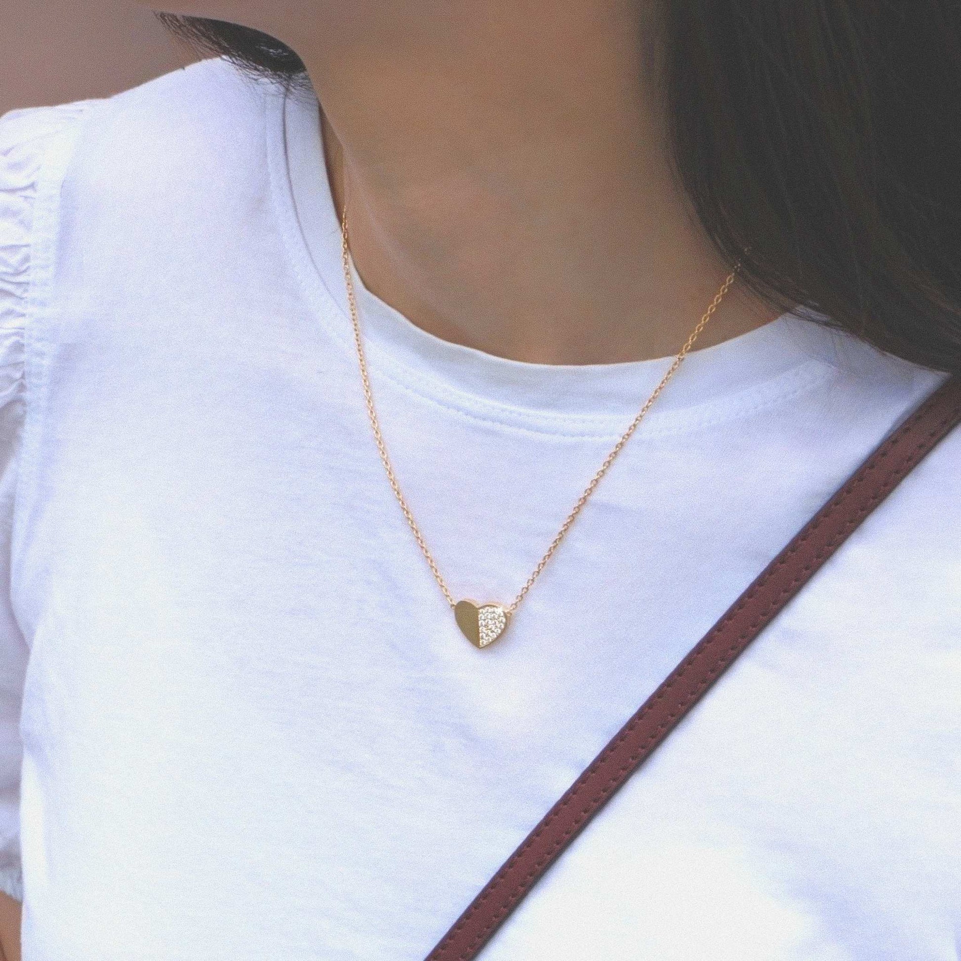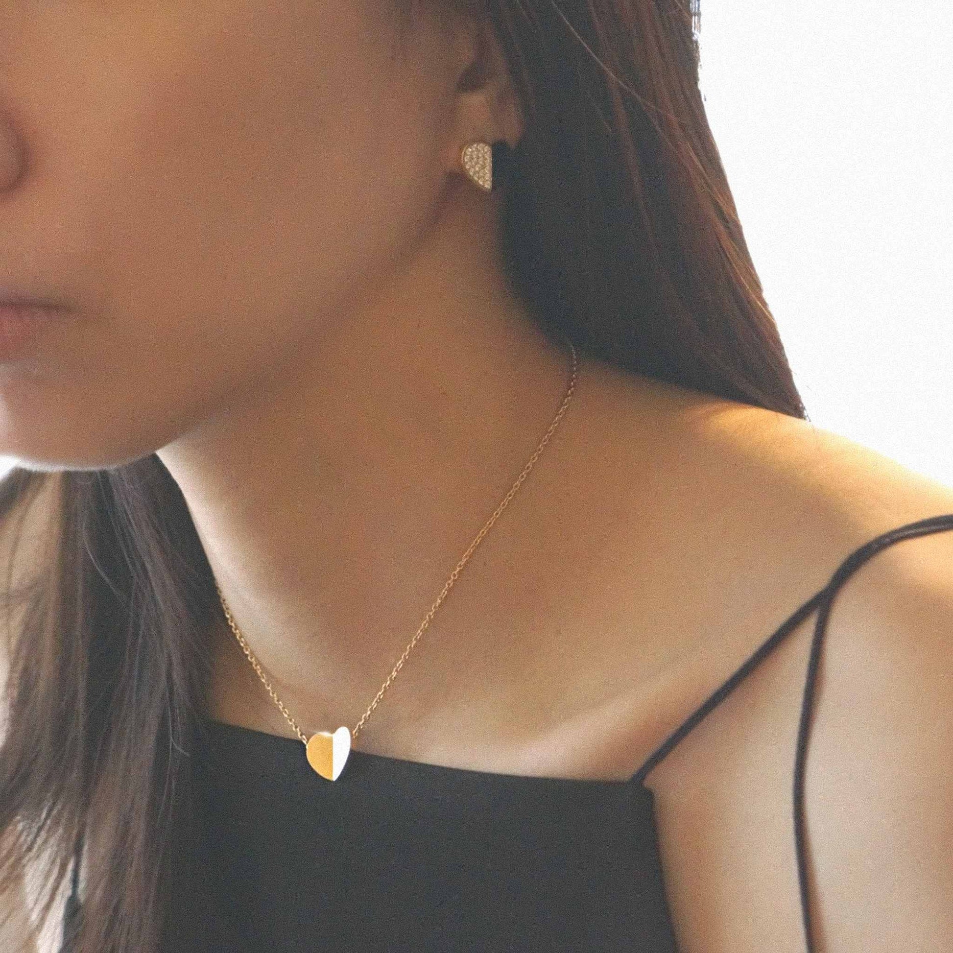 ベースに生まれた、 folded heart pave diamond necklace。