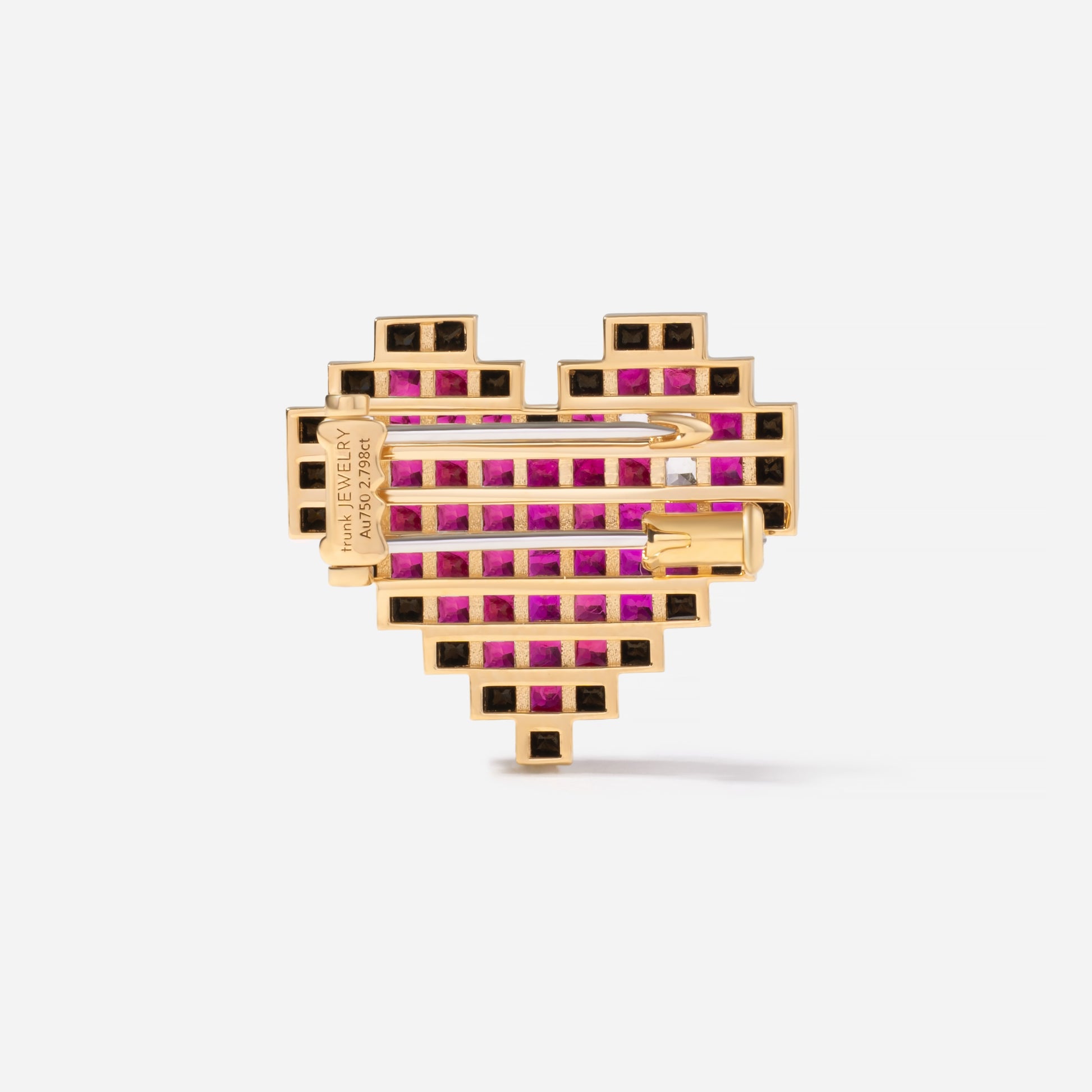 8-bit heart Invisible setting brooch に使用しているルビーには、