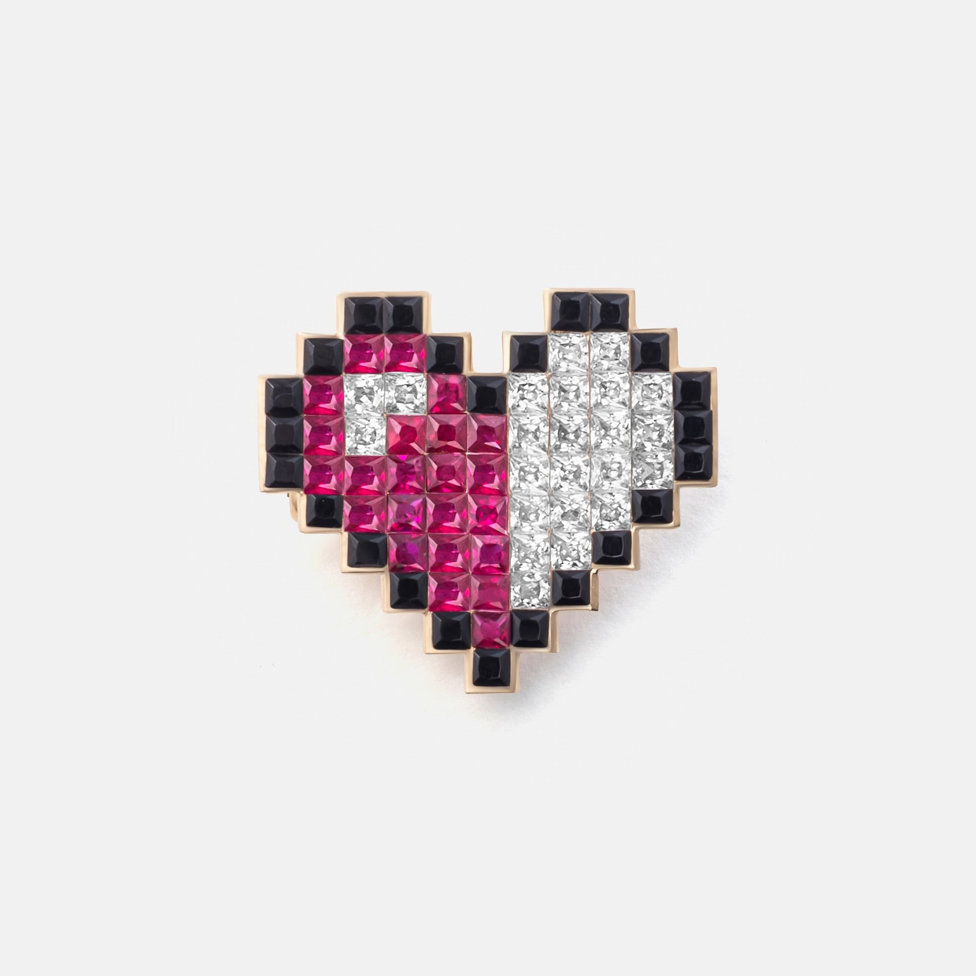 ピクセルで描かれたハートマーク——そんなノスタルジックな〝8-bit graphics〟を、ジュエリーという領域に忠実に落とし込んだ、遊び心とラグジュアリーさが響き合うピース。