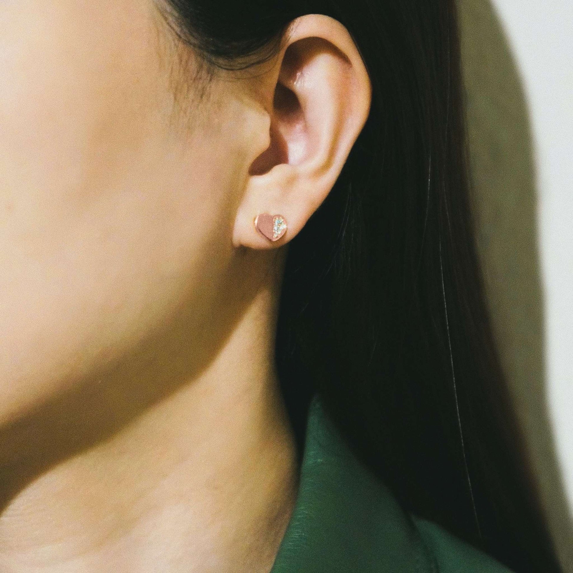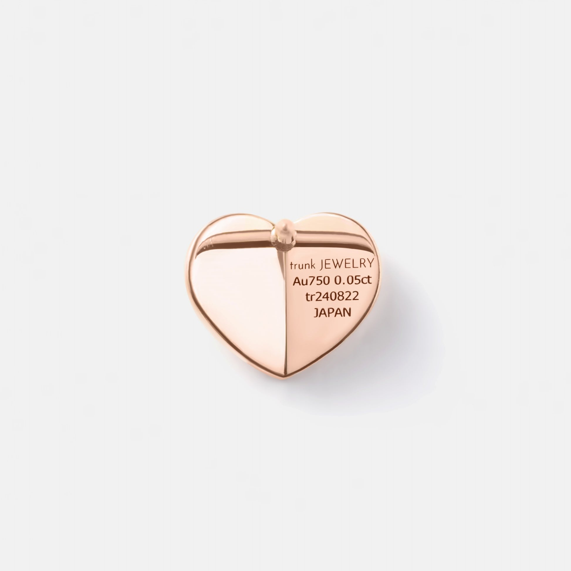 美しく磨かれた地金の面と、贅沢にセッティングされたダイヤモンド面。ハートという甘いモチーフでありながらも、年齢を重ねても使用しつづけていただけることを重視してデザインされています。