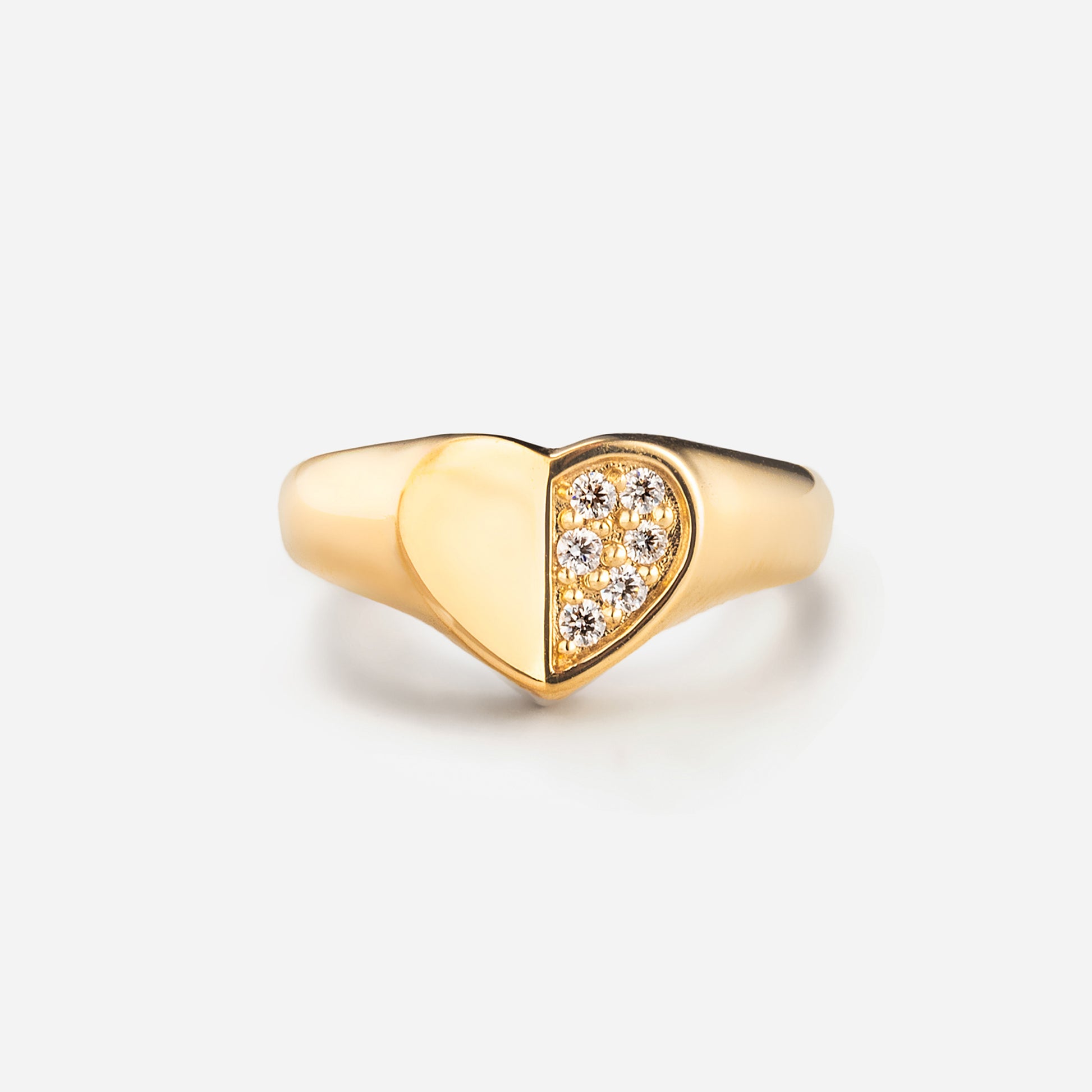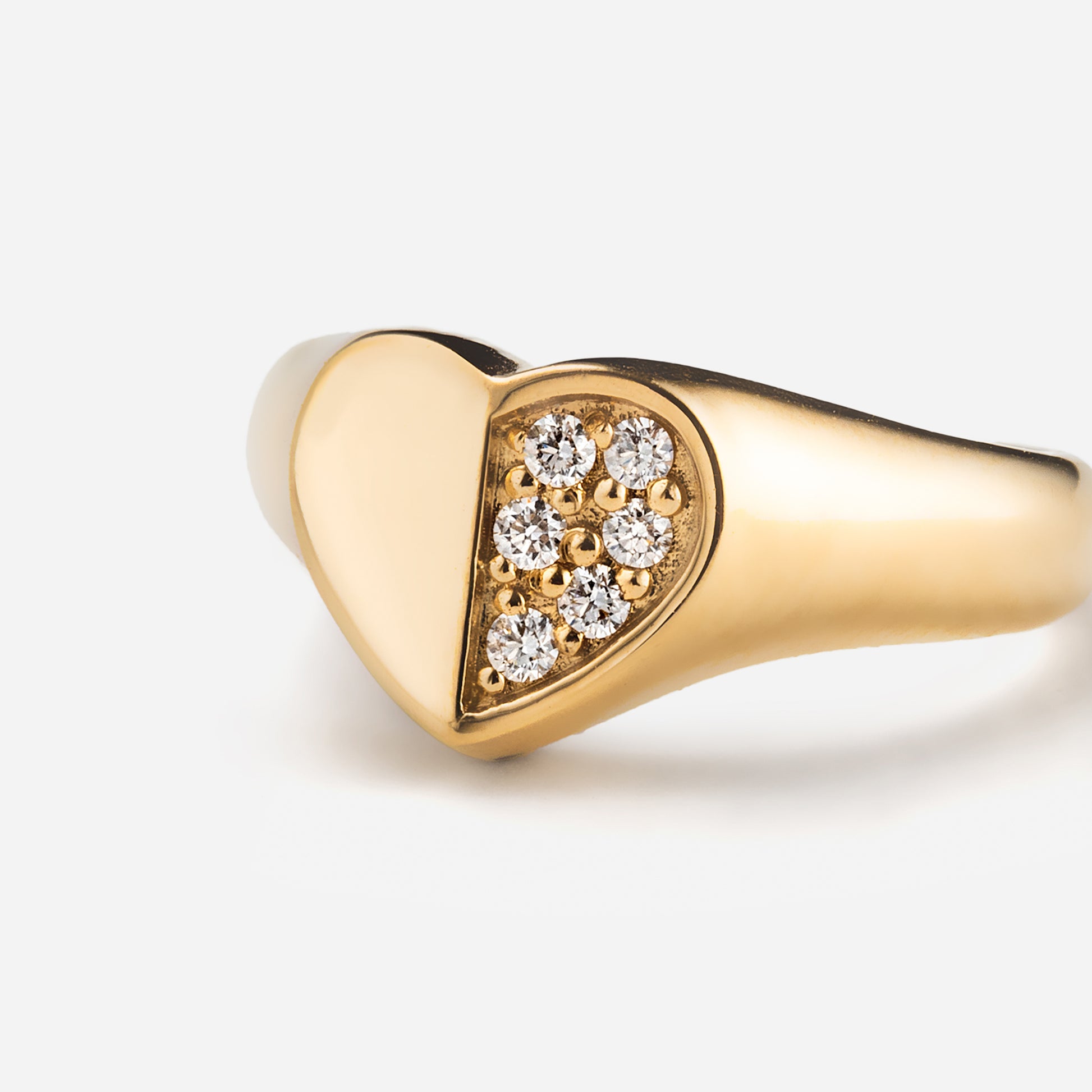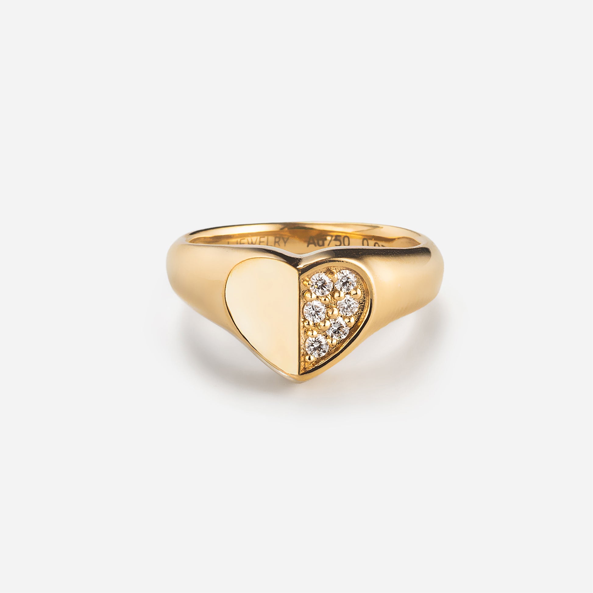 refined legacy collection / folded heart pave diamond signet ring K18YG