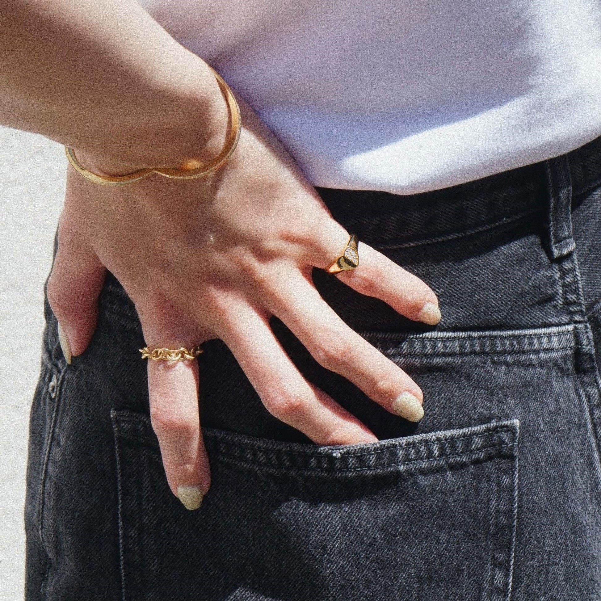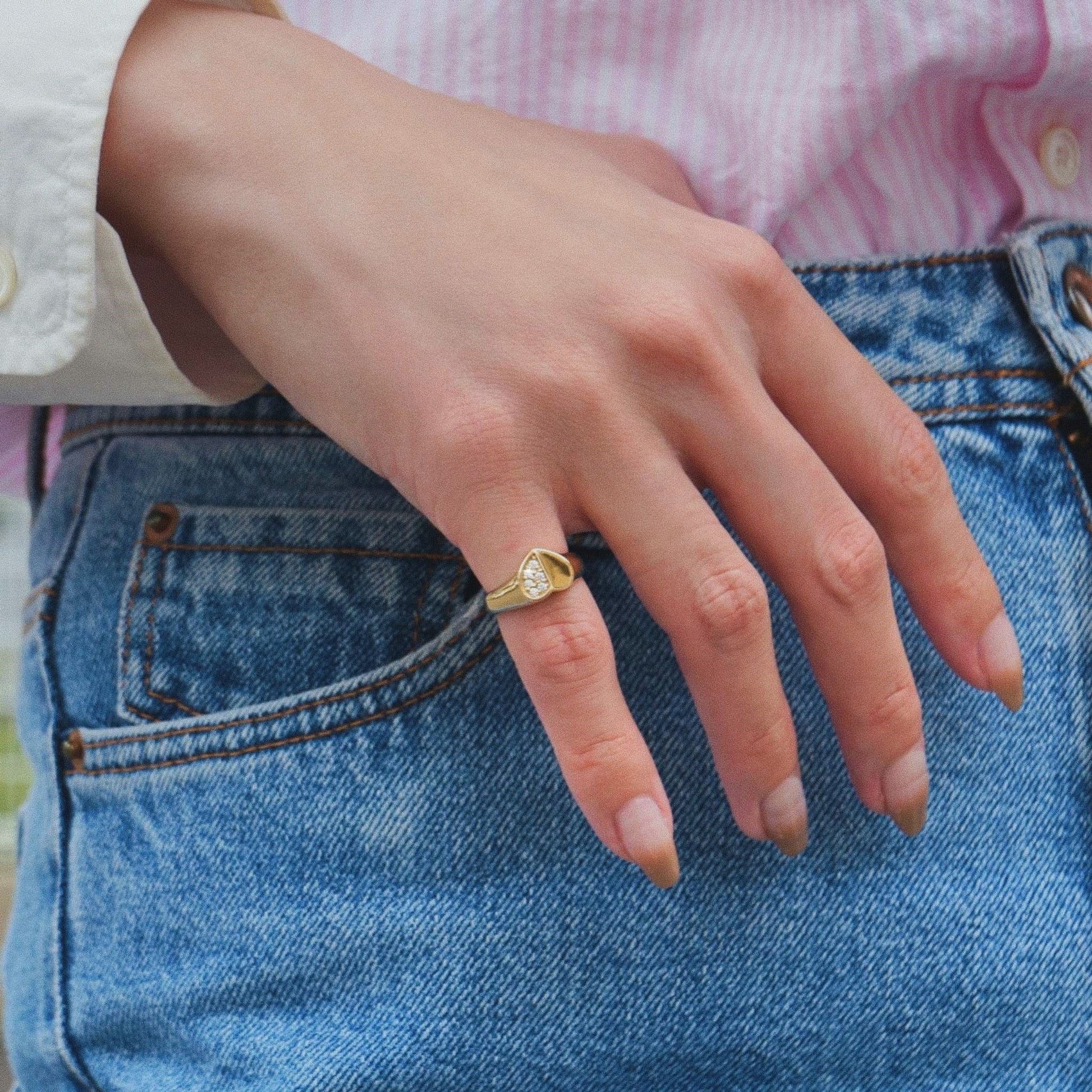 ベースに生まれた、 folded heart pave diamond signet ring。