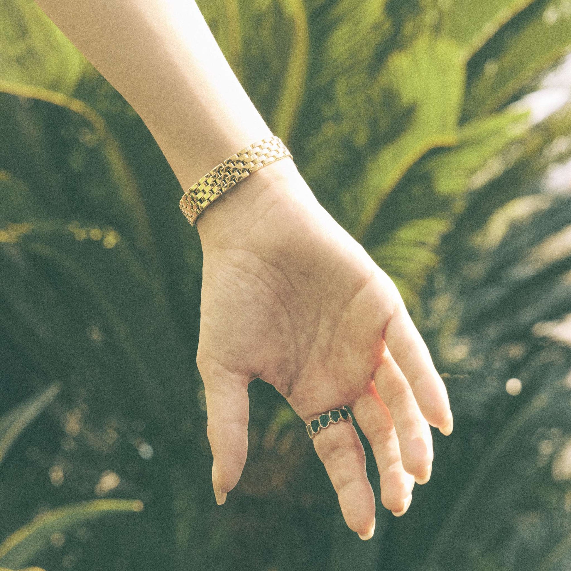 深いグリーンのマラカイトがもつ曲線模様を、